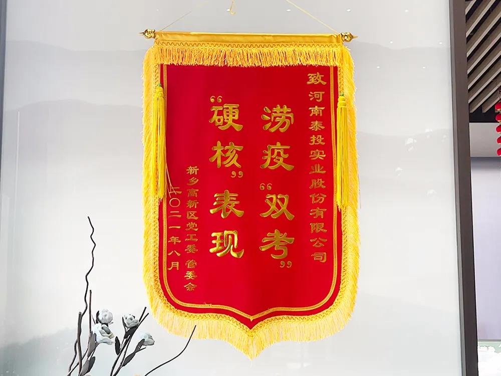 8月13日,高新區(qū)管理委員會副主任田維琳、經(jīng)發(fā)局局長杜輝、經(jīng)發(fā)局副局長楊修廣等相關(guān)部門領(lǐng)導(dǎo)將感謝信、錦旗、物資送到泰投科創(chuàng)產(chǎn)業(yè)園,對泰投科創(chuàng)產(chǎn)業(yè)園在今年7月份新鄉(xiāng)遭遇暴雨、洪澇災(zāi)害后,響應(yīng)政府號召積極承擔(dān)社會責(zé)任,免費(fèi)為受災(zāi)民眾及救援隊(duì)提供安置點(diǎn),衛(wèi)生間、淋浴間、餐廳、中央空調(diào)24小時(shí)開放,安排工作人員全天候值守,隨時(shí)為群眾解決困難的行為表示感謝。